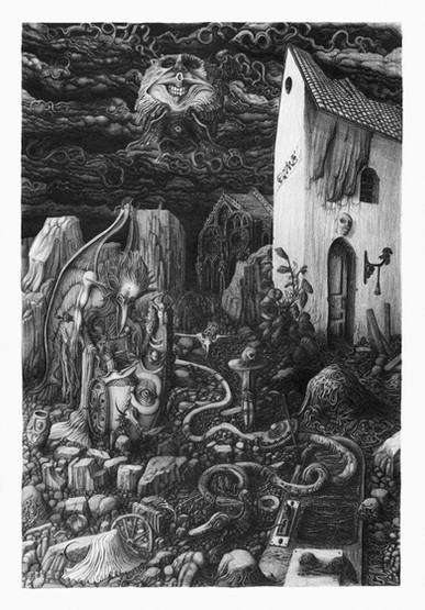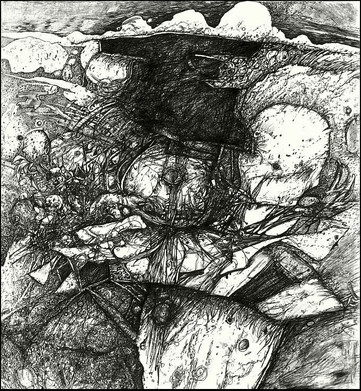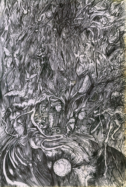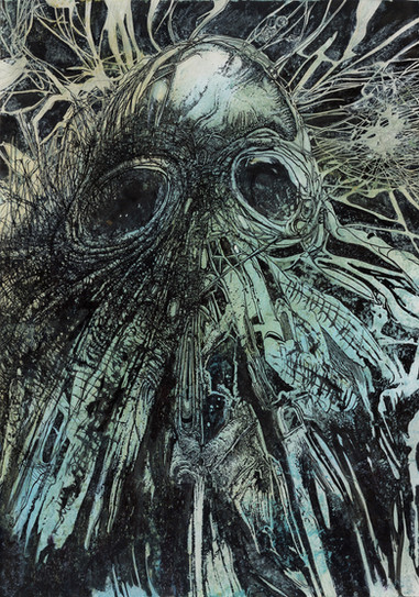 Intriguing, intricate and very surreal. It has the essence of a rather uncomfortable dream - as though the dreamer were very aggitated, and this is its expression!