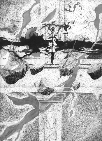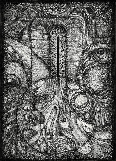 #artwork #ballpointpen #drawing #dream #flowers #garden #monolith #surreal #surrealism #piotrzygmunt #art