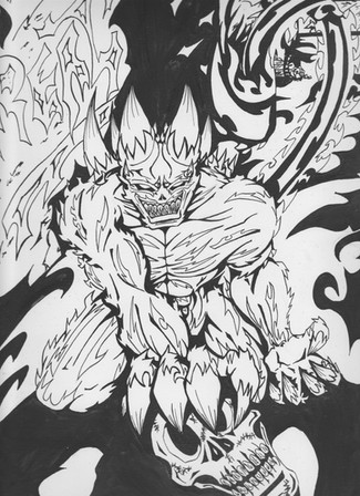 I like that you can see his eyes,and that the horns are ripping through his cloak. I'm so glad that talent like this isn't being wasted.