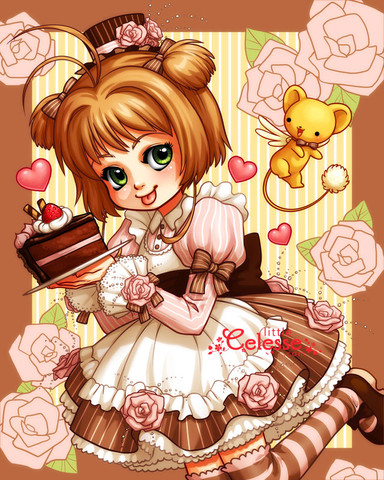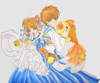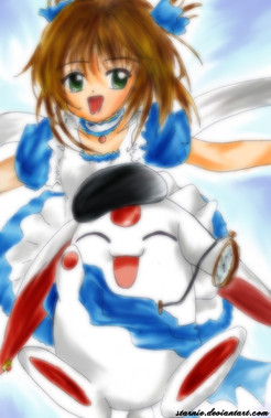 Sakura's head is a bit too small in proportion to her eyes. Also, in general I think Sakura is a little smaller than Shaoran in this picture, so it makes it look like they don't quite belong together. I think that's the problem anyway. The coloring is wonderful though, and those little mice~!