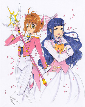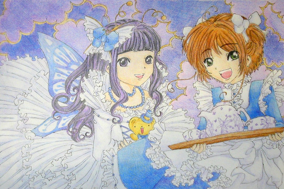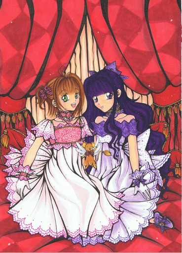 Oh... my... god... how do you do these dresses? All the frilly stuff would drive me insane!! XD Very beautiful, very Clampesque... I do like the lineart a lot and the two girls are just beautiful!