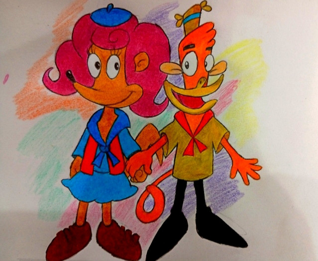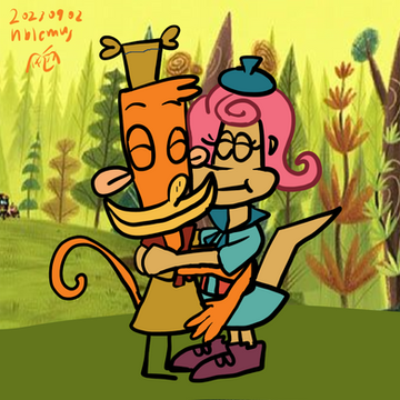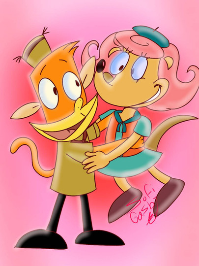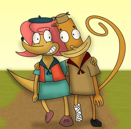 Here you go, .I made Lazlo and Patsy (from Camp Lazlo) holding hands.