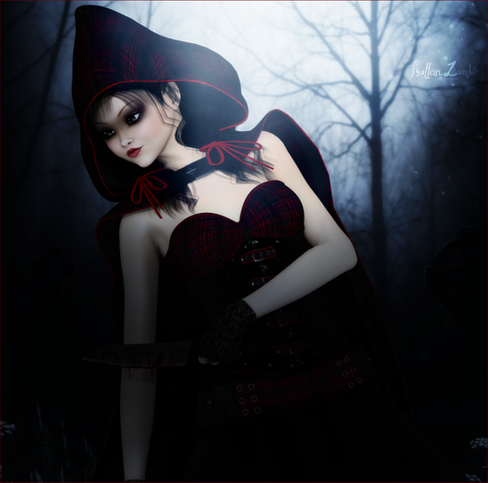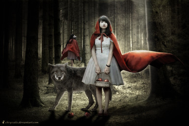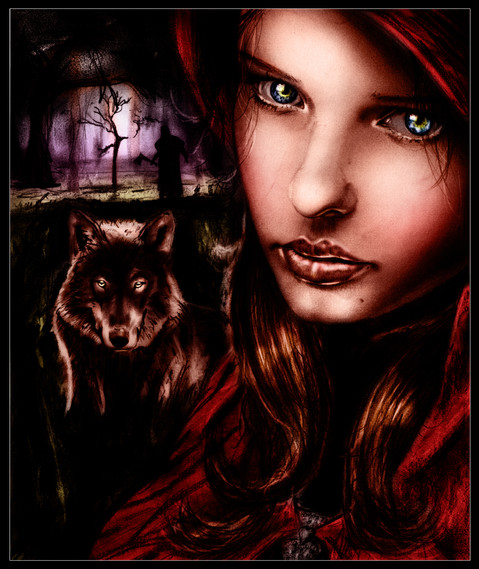 Amazing image! It's great because I can find my same interests of research (I'm s PhD that had studied postmodern rewritten fairy tales) and I had also written some tales that use folklore and fairy tales characters with another point of views. I'm going to realise a book trailer of collected tales, with come artworks that various artists has realised, with those characters. But I search for an image that show little red riding hood. Can I use this for the book trailer, writing your nome and artwork title?