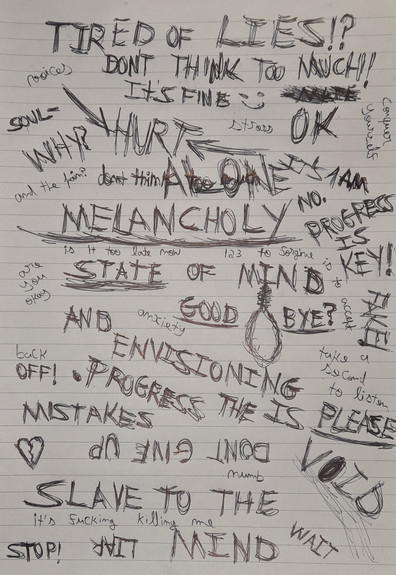 Nice job, I can sense sorrow and rage from within this piece. but I do see a bird sitting upon a branch that breaks all that. Good job