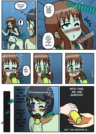 Last one promiseOk A comment on the previous comic reminded me of an underwater breathing contest I had with my friend.. In the first comic, I obviously cheated... In the second comic, I kept trying to make my friend laugh underwater XD It was fun.. in the end we both started posing underwater. Good times..good times..