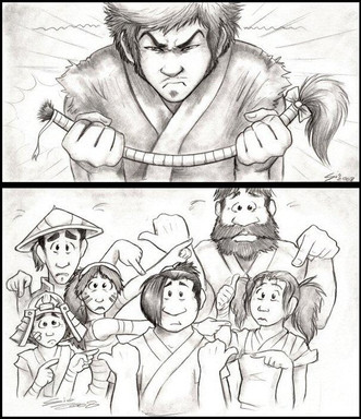 I contemplated drawing how he'd look if his uber-rat tail was undone....buuuuttt...I don't think there's be enough room on the paper for all that hair 0_o Maybe one day tho