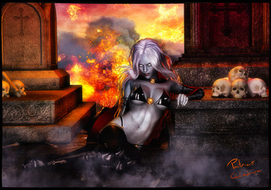 Very cool image! I really like the lighting and the overall dark style of the image. The bats add well to the emotion that's going on here.