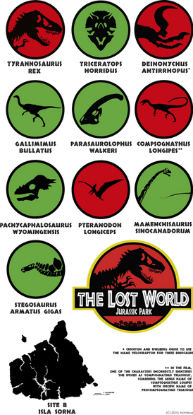 Dinosaur species on Isla Nublar based on Michael Crichton's novel.Related content