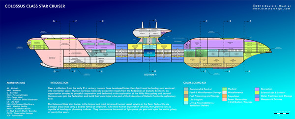 Since I conceived of this ship, the Star Trek universe(s) have undergone something of a massive size-inflation binge to the extent that the Colossus is no longer the obvious oversized monster it is.