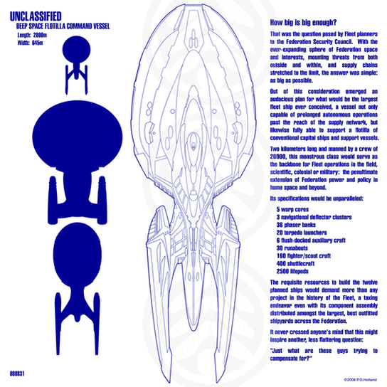 That is the general idea β wasteful, ostentatious, and more than a little provocative, raising the question of why the Federation sees a need to assemble the task forces these command ships would be the operational centerpieces of: Β not exactly an expression of the self-avowed "spirit of peaceful exploration".