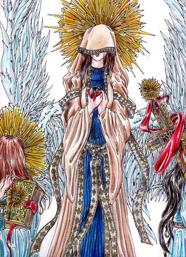 Para la composición de esta escena utilicé mucha influencia de las cartas de Tarot, más que nada para darle una narrativa simbólica implícita a la ilustración.