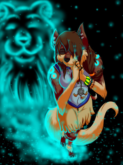 Wow thats really pretty. I like the way you did the spirit. The long trail behind it looks really neat!