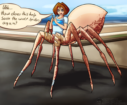 Roxy: I don't care what anyone thinks, I love being half-spider. You don't have to worry about hurting your feet, I can climb walls and buildings, I'm extremely strong, and I am seriously considering making a web in my bedroom.