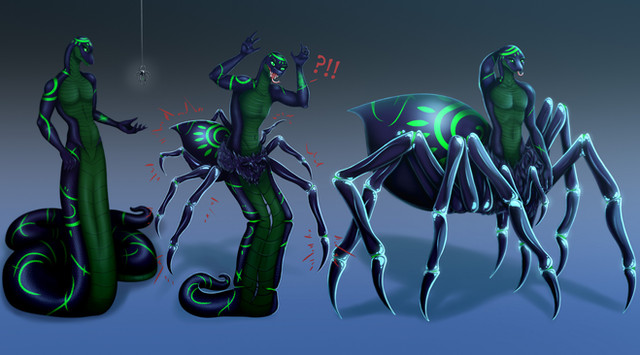 You do a far cleaner job than most do in the drider transformations. I try and envision it as somewhere between madness, and self destruction.