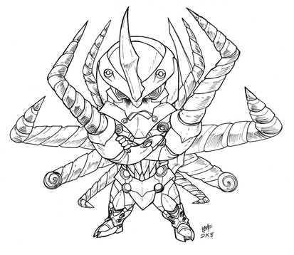He looks like he has a similar design to a Yugioh monster. I'm not saying its exact it just looks similar.