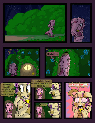 Oh snap Brent. Look what you did?! You created a totally awkward page full of panel glaring and awkwardness and only two bubbles of dialogue! Really, how are you going to clean that blood off your clean floor? You have got to stop making these touchy feely non action-y moments!