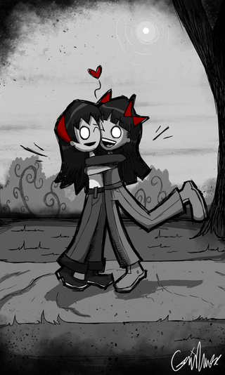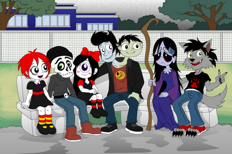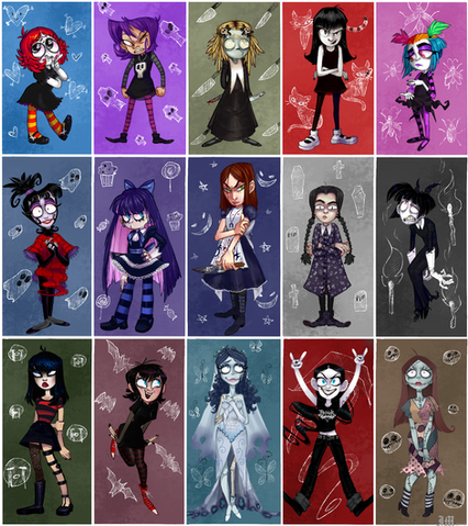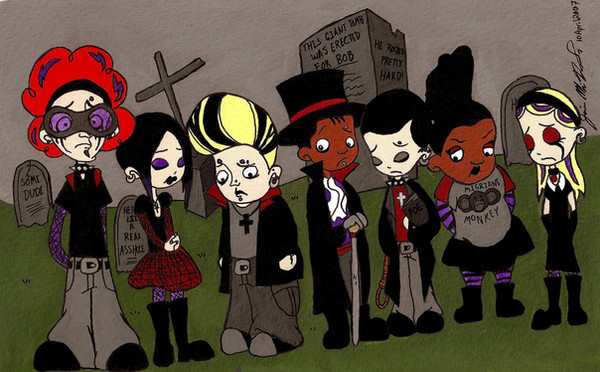 I'm sure this is one rare occasion where Nilly smiles heheeheh . Gathered all my goth characters from her story to draw them altogether