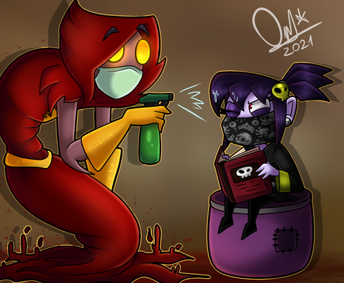 Been a while since i made any kind of Invader Zim art I truly truly missed it but i absolutely had zero ideas. I also wanted to "polish" my IZ style (Ughh looking at the old works makes me gag) and thought why wouldn't i try to draw Gaz and Nilly in Invader Zim Style...sorta XD They have a few common things. The gothic look, the temper and grumpiness but nahh she won't be IZ OC it was just for the fun. If i will have more time i definitely try to redraw my Lin and my whole Mirmin fan species in this more fitting style