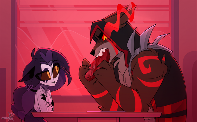Divider for DOTM for Hazbin Amino. never drawn him before it was my first try and of course my overthinker brain wanted background too ughhhh . Tho im not happy with the shading but oh well :')Verosika and Vortex belong to Vivziepop