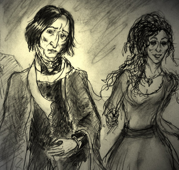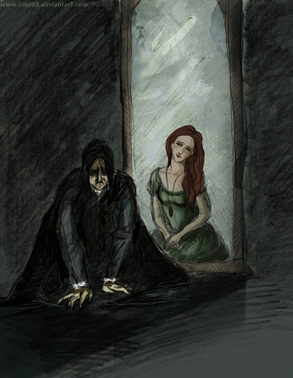 In this painting, due to the disjointed way you drew Lily wrt the rest of the pic, I can't decide if she is indeed there or only Severus' wishful thinking, which is kind of fitting and a good commentary on the guy's whole life.Β