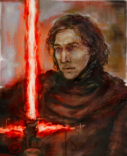 This is a preliminary sketch for a Reylo painting I am doing at the moment. I thought I would share the sketch to see what others think. The idea behind this picture is that Kylo Ren is having a Force vision abiut Rey. This takes place before the events of the film. This is speculation on my part, but I believe Kylo Ren had Force visions about Rey before their meeting, as Rey did abiut him. In the novelization, Rey has two visions where a young boy is seen. I had suspected it was Ben Solo upon my first reading, though it has recently been confirmed that the boy was seen standing beside a dark, shadowy figure - Snoke. Kylo Ren having Force visions abiut Rey would explain some of his lines and behavior - at least, to me it does. Let me know what you think! Your feedback would be much appreciated.Related content