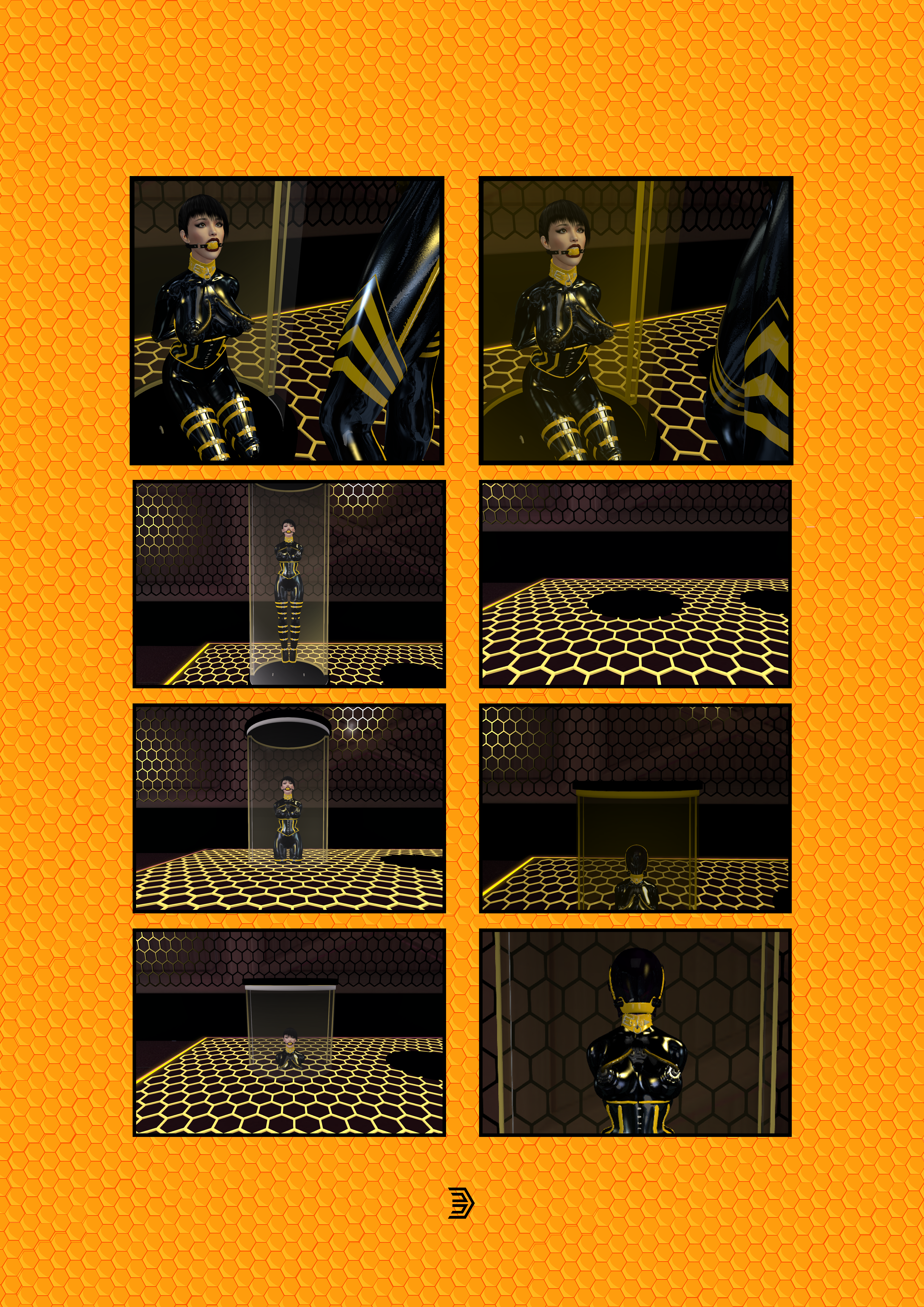 Nell is such a sweetie to use a glorious black-and-orange scheme. The sexy, faceless hood? Magnificent. Tight shiny straitjacket? Incredible. Inescapable? A cozy padded room? A collar with the inmate's true identity?