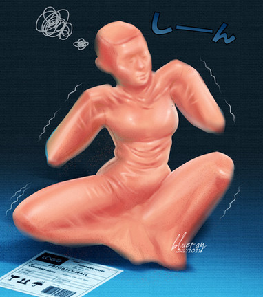 In this piece, Phantom is the victim of a power struggle at the top of her company. When the dangerous Aria-Warden betrays her, she finds herself disappearing into her own machines! With no obvious rules for what to do with abandoned rubberdolls, she will be auctioned off. How could she possibly escape this mess?