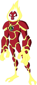 Heatblast (voiced by Steven Blum in the TV series and by David Franklin in the live-action movie) is a Pyronite (pyro meaning fire) from the star Pyros. Pyros, despite being a fully-functioning sun, has enough plots of semi-solid land for Pyronites to exist. Having evolved on a star, Pyronites are magma-based creatures that can project and control fire at will.[15]The primary trait of Pyronites is their control over fire, which manifests in a variety of ways. From projecting bolts of flame, radiating heat in all directions, or even firing at the ground to propel themselves like a rocket, the fire-manipulation powers of Pyronites can produce a nearly-unlimited range of effects. This tends to make Heatblast's scenes some of the more spectacular ones in the series. Apart from this, Heatblast is also a highly durable alien, able to endure being thrown through buildings without being slowed.