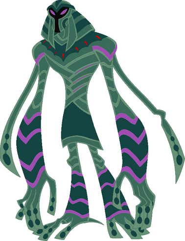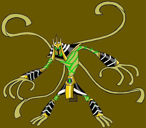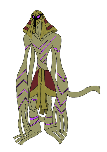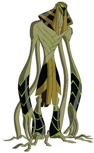 BenmummyBenmummy (voiced by Richard Green) is a Thep Khufan (playing with the word Khufu, an Egyptian pharaoh) from the planet Anur Khufos. In the dark belt of planets that gird the Null Void from regular space, Anur Khufos is a world that exists below the surface of perception. It contains huge deposits of pure Corrodium, a highly radioactive metal that causes monstrous mutations in most species. The Thep Khufan are mummy-like aliens composed almost entirely of a bandage-like material, akin to the linen used on real mummies, with a solid, shell-like head. Benmummy's appearance differs slightly from the other mummy alien seen. His eyes and the gaps between his bandages glow green instead of purple. Benmummy also has black bracers and greaves, as well as a smaller mask and the Omnitrix symbol on his left shoulder. Benmummy can speak, even though the original seems to be mute.[1]