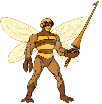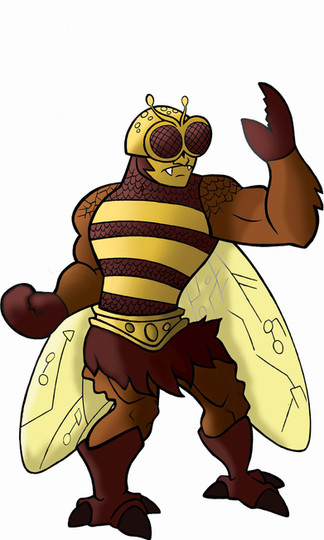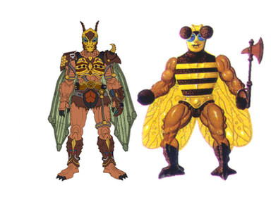 Buzz-Off would feature 12 points of articulation. A ball joint at the neck, swivels at the shoulder, biceps, wrists, and waist. Sort of a hinge swivel at the hip, and a boot cut. Hos wings would be on a hinge swivel connected to his back and he has a pair of extra limbs on ball joints connected to his lower back. His accessories include His battle axe, Halberd, and helmet/goggles.MATTEL owns Masters of the Universe