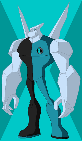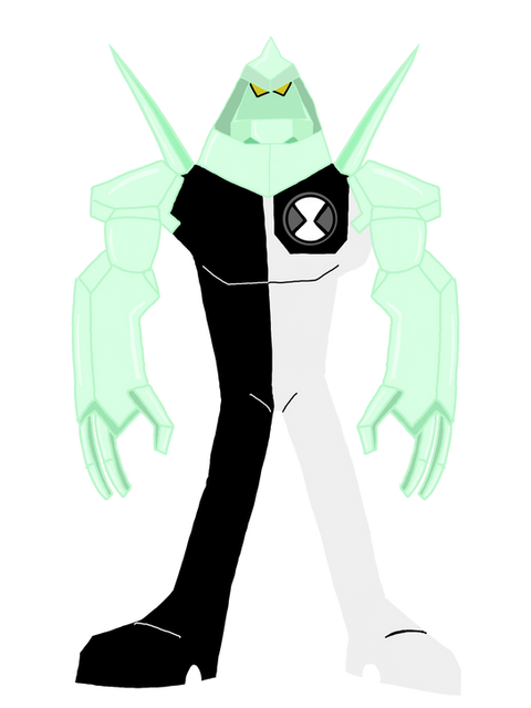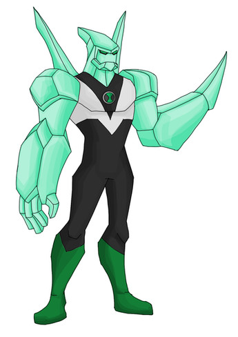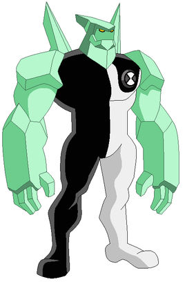 Diamondhead (voiced by Jim Ward in the TV series and by Daran Norris in the live-action movie) is a Petrosapien ("Petro-" referring to rocks, "sapien" referring to an intelligent being; Petrosapien would mean "intelligent rock") from the planet Petropia (a combination of the Greek "Petro-" and "topos", forming a word similar to "rock place"). Petropia was a crystal-covered world, and its inhabitants are silicon-based lifeforms.[9] The planet was destroyed by Vilgax with assistance from Tetrax, who unknowingly helped him create the weapon that destroyed his home.Made from an extremely durable crystal, Diamondhead is nearly invulnerable. Additionally, his sharp crystal body discourages physical contact, as crystal spikes can be grown almost instantly from any point of contact and retracted just as quickly.[9] Diamondhead can also alter his own physiology, allowing him to regrow lost limbs if necessary.[10] Light-based weapons are also useless against Diamondhead, as his crystal body acts as a prism, refracting light and beam-based weaponry and sending it back at its source. He can also spread diamonds on to objects to protect them.