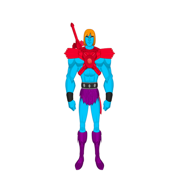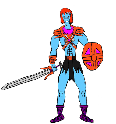 Faker would feature 12 points of articulation. A ball joint at the neck, swivels at the shoulder, biceps, wrists, and waist. Sort of a hinge swivel at the hip, and a boot cut. He's a straight repaint of He-Man with Skeletor's armor. The armor would be removable and have a slot for storing the sword on the back. His accessories include: Fake Power sword, axe and shield.MATTEL owns Masters of the Universe
