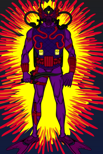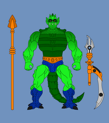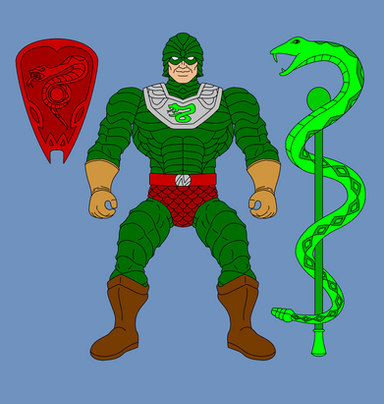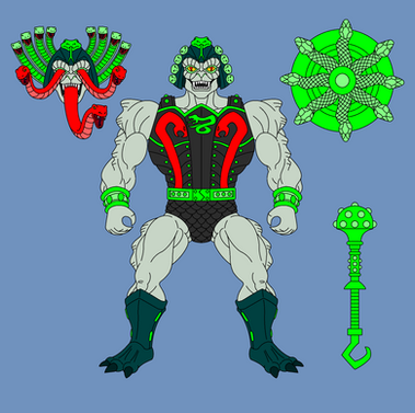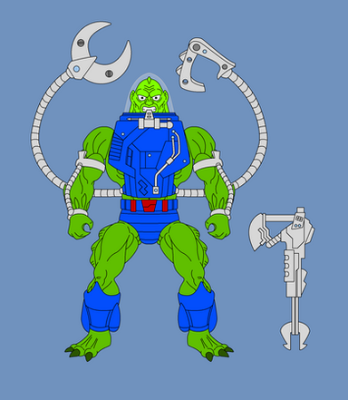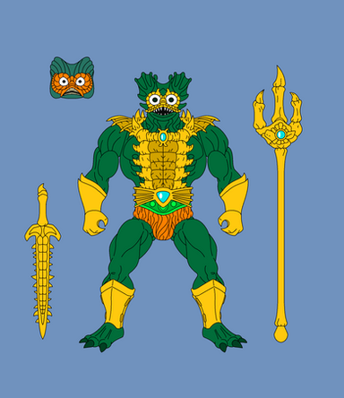 Hydron would have 12 points of articulation. A ball joint at the neck, swivels at the shoulder, biceps, wrists, and waist. Sort of a hinge swivel at the hip, and a boot cut. His body would be a new mold so as to not make him too bulky. His dome and air tank backpack would be removable. His right thigh would also be a new mold, honestly most of him would be a new mold. His accessories would include: clear dome, air tank/backpack, harpoon weapon, and diving knife.MATTEL owns Masters of the Universe