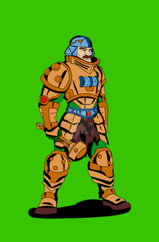 Kronis would have 12 points of articulation. A ball joint at the neck, swivels at the shoulder, biceps, wrists, and waist. A hinge swivel at the hip, and a boot cut. His belt is removable and his weapons can be hung on either side. His accessories include: Mace, Sword, and Shield.MATTEL owns Masters of the Universe