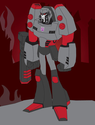 Well I finally done what is the companion peice to 'One Shall Stand...' so effectively it is the phrase "One shall stand, one shall fall." said by Optimus in the 86 Transformers movie.Earth mode Megatron from Transformers Animated.