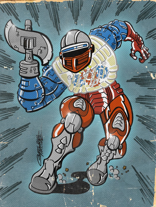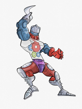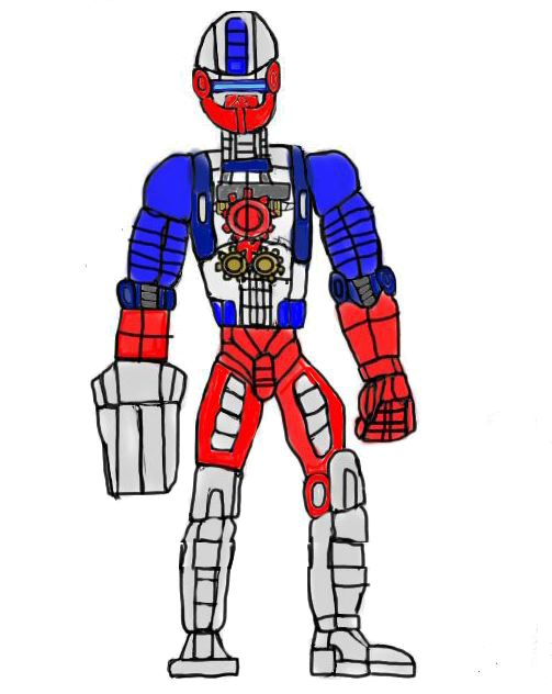 Roboto would have 10 points of articulation. A ball joint at the neck, swivels at the shoulder, biceps, wrists, and waist. Sort of a hinge swivel at the hip. He would feature moving gears in his body when you twist his waist. His lower arms are removable to interchange with his accessories. His accessories include A single barrel blaster, his double barrel blaster, claw and axe attachments. This would be my main version of Roboto and is based mostly on the 200X version of the character.MATTEL owns Masters of the Universe