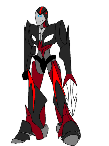 This is Shadow in the animated form. If you don't know who that is ...well theres a good reason for that. He's my car. Back about 5 odd years ago when I first bought my car I started tinkering with the notion of making it into a transformer and so I did. My best friend is the one that named him, because the car is black and extreamly quite.I never really fleshed out a background for him but I did make him basically a ninja like spy, kinda like Bumblebee and Snake-eyes mixed(No, he does not use a sword). His speciallities are espionage and reconnaissance.
