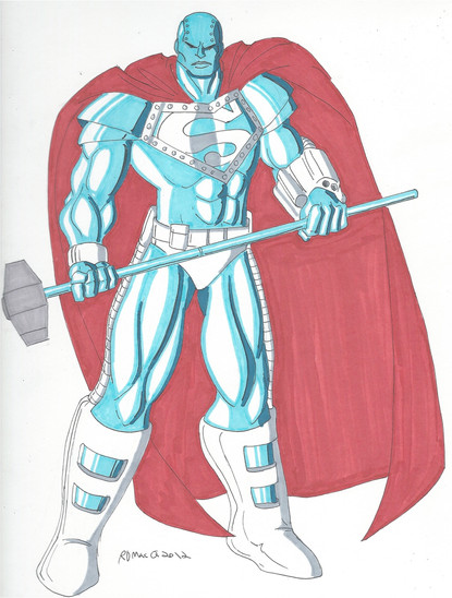 So I was talking with my friend some time ago (this is an old picture) and we were talking about the old Reign of the Supermen and Knightfall stories from DC comics. So as we talked about them he said it would be cool to do that kinda stories with my characters Sentinel and Knightshade respectively. So I said what the hey and I done 5 varaiants of Sentinel that would go along with the Reign of the Supermen plot, tho I never got around to doing anything with Knightfall yet.Here is the First of the characters I done. He would be like Steel, as in he is a guy wearing an advanced suit of armor, I gave him a very large mechanical mace instead of a hammer tho. I called him Titanium to keep with the metallic like name of the original character.