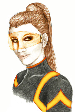 This is my favourite piece that I've done so far. I love the pose. I love the shading. I love the way that her face says "when I get out of these cuffs I'm going to cut someone in half with a light disc".