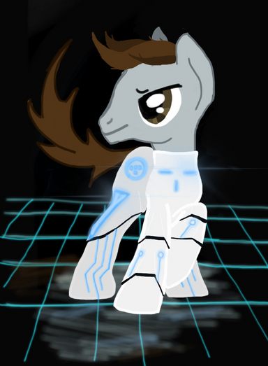In case you were wondering, Clu's cutie mark is a 'yes' bit. When I drew it, I didn't have a reference, and I thought that was a neutral bit for some reason. Oh well, it still works. And yes, Tron is rockin' that helmet like no-ponies business!