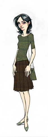 Really cute drawing. She fits so well in this dress.