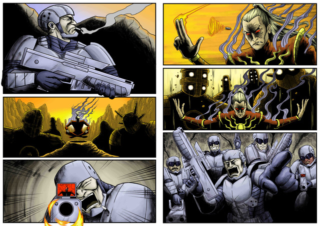 Two figure come in from the sand storm. The door close down behind them. Cutting off the burn light that still makes it way.