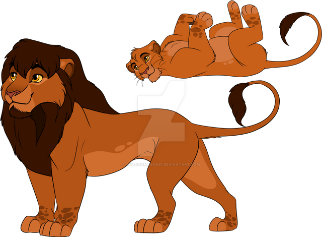 Moyo is the son of one of the lionesses of Mkali's pride and often plays with Cas's cubs. He and Jamila eventually fell in love, leading to Mkali breaking the betrothal between her and Ojore. Moyo would be king alongside Jamila when Mkali and Cas would step down.EDIT: Moyo got a redesign. I am MUCH happier with this look. Similar mane to Simba's but smoother like Mufasa's and a beard.