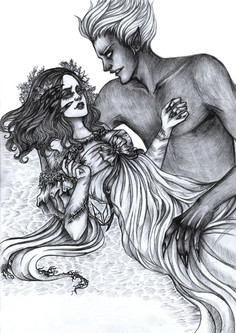 I love the composition of this piece! It's a lot more unique then the typical "Vampire changing a human into a vampire" scene. The dark textured background is really cool and it helps make the vampire's wings stand out a little more too! I don't think it looks "muddy" at all, it looks very flowy and awesome like all your other pieces! Nice job! (I'm also curious about the story behind this piece!)