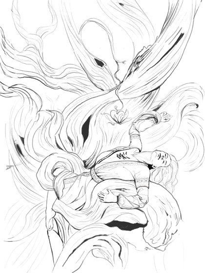 This is quite stunning. I have to say, I'm most mesmerized by the way you drew the hair, especially on the taller figure.