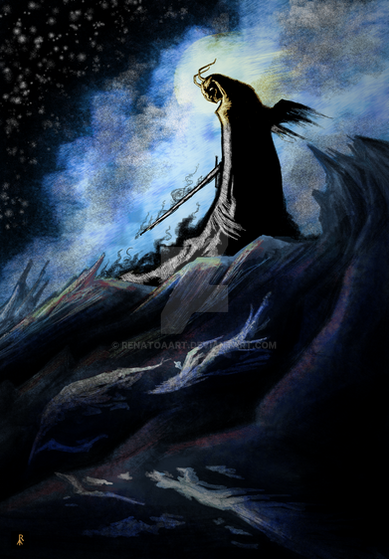 I was part of the Tolkien Secret Art Exchange this year for The Silmarillion-themed secret santa. My secret santa asked for Melkor, so here we are!This illustration is based on the scene where Melkor emerges from Angband to answer Fingolfin's challenge. It's one of my favourite scenes!
