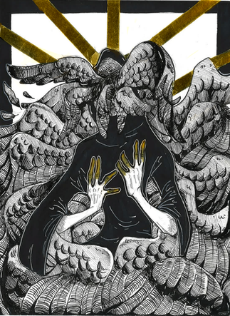 My entry for the "Jar of Teeth" zine: [link]This is based on the Greek legends of planting dragon's teeth. I wanted to try something a little different, something a little bolder than what I usually do. The colour scheme for the zine is yellow, black and white. I don't normally include yellow in my colour palette.