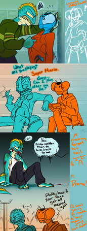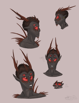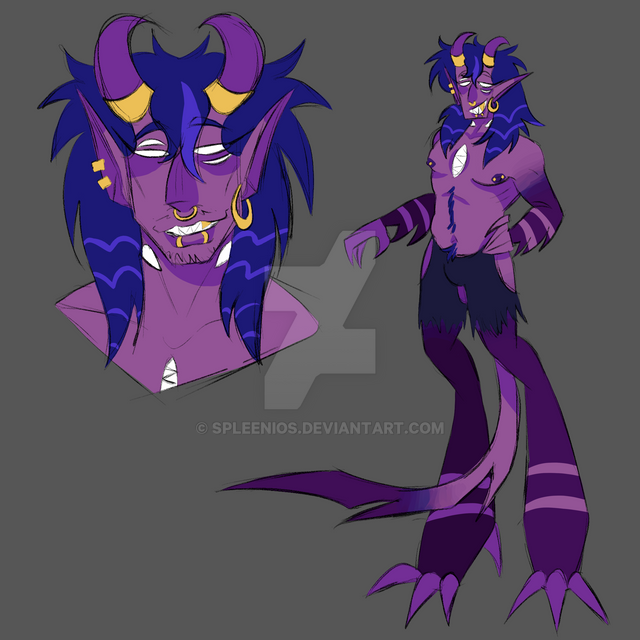Mhm, so here's Vogus, a dream demon that enters sleeping mortal minds and eats their dreams, replacing it with nightmares. He's a pretty chill guy, but he's quick to fight, especially when his size is involved. (he's only about 5'5" standing up straight) He also works hard to care for and feed his 90 or so other siblings, after his dad tried to eat them, so yeah, Vogus finds himself being the new parent since he's the eldest.So yeah, he's one of those character's where I really like the color palette.