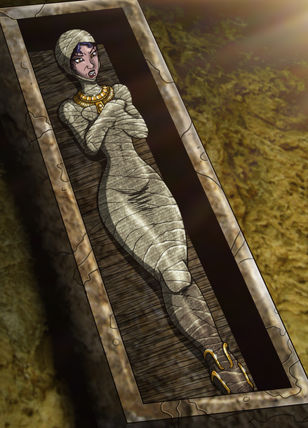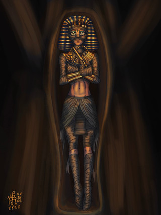 A picture of omorose being mummified i love this style of art it reminds me of painting...but on a computer lol.