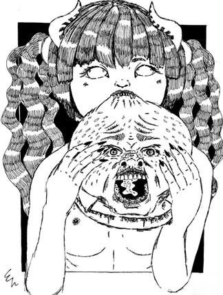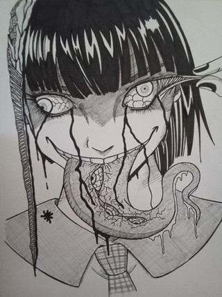 #blood #breasts #digital #fangs #girl #horror #monochrome #nude #oc #phobia #sad #scales #sketch #slender #snakegirl #solo #tired #trypophobia #short_hair #forked_tongue #psychological_horror #black_background #bob_cut #amputee #black_and_white #psychological #animemangagirl #original_character #digital_art #small_breasts